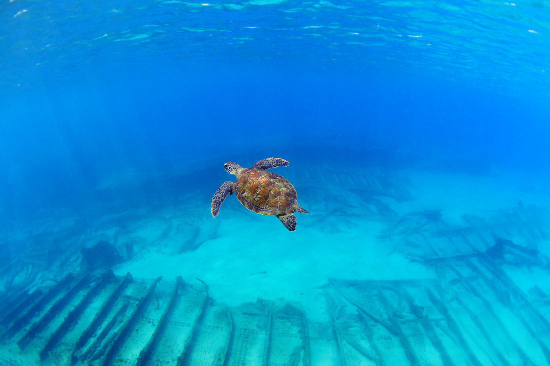 Literalmente me encarando, essa tartaruga verde, não se importou com a minha presença e me...